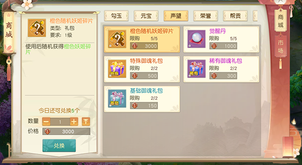 战斗胜利后,会提升排名和获得声望。存到一定的声望后可以去商城买各种升级材料:妖姬碎片、觉醒丹御魂礼包等等。