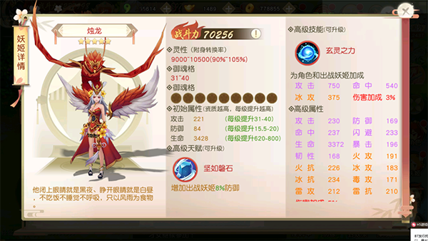 坚如磐石:坚如磐石为烛龙的专属高级天赋,可升级,可提高出战妖姬的防御能力。